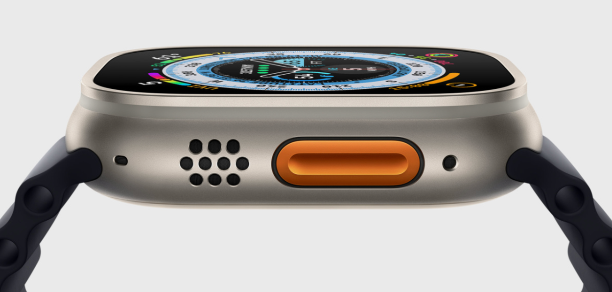 А вот старшая модель Apple Watch стала настоящей неожиданностью - Apple впервые использовала в названии Ultra. Флагманскую версию в полной мере оценят любители экстремальных и самых активных видов спорта. Часы разработаны в соотвествии со военным стандартом защиты MIL-STD 810, благодаря которому они могут переносить самые сложные условия использования, например, погружение на глубину до 100 метром. Корпус устройства выполнен из титана и имеет диаметр 49 мм - такого мы еще не видели. Экран у данной модели плоский, благодаря чему удалось реализовать дополнительное ребро жесткости, а также покрыт сапфировым стеклом. Часы обеспечены вторым динамиком для более громкого звучания, дополнительной программируемой кнопкой оранжевого цвета.